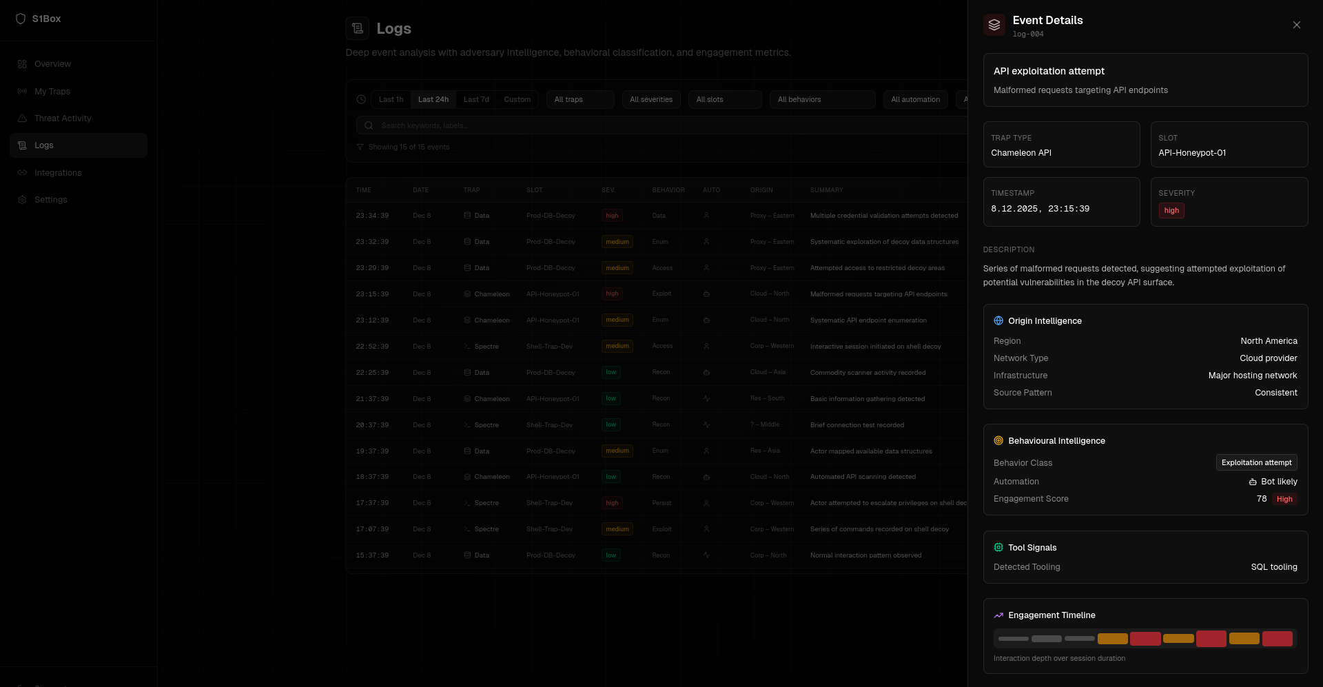 S1Box reveals how attackers behave when they think nobody is watching — origin, intent, tooling, and depth of engagement.